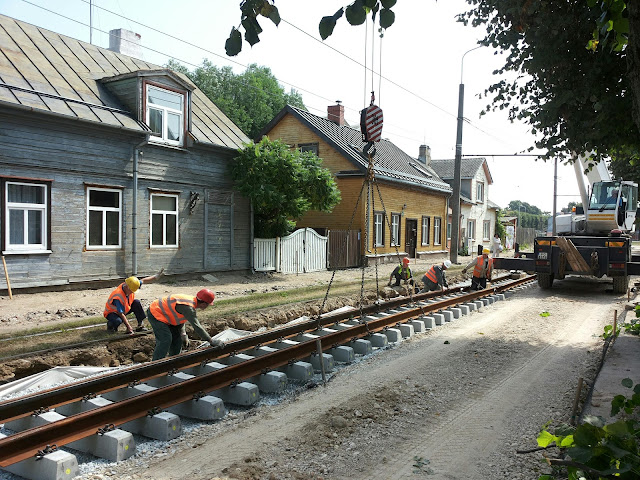 Viena neliela mobilā reportāža, pēdējās dienās telefonā sakrājušās bildes iz Kr. Valdemāra ielas remontdarbiem. Darbi pavirzījušies jau krietni uz priekšu, ja kas. Tiek planēts ielas apakšējais segums, ieklāts tekstilīta audums, izlīdzināts jaunais smilšu slānis un tiek jau savestas šķembas uz kurām uzstādīs jaunās tramvaja sliedes. Nu tā te vīri rosās īsumā.